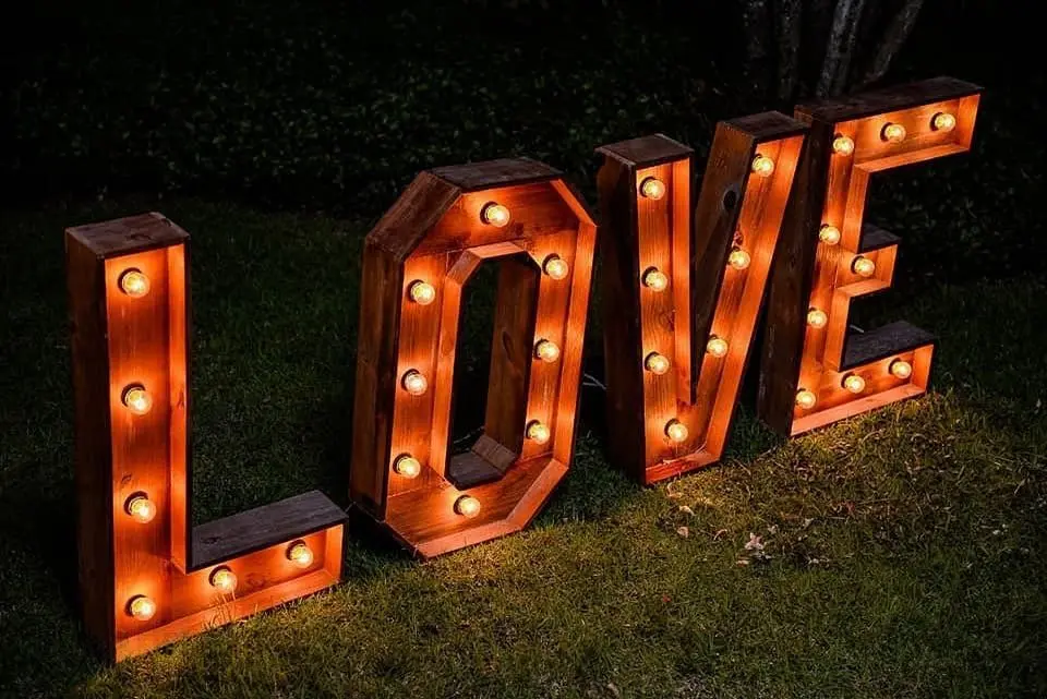Transforme qualquer ambiente com este incrível letreiro LOVE feito em madeira rústica e iluminação vintage!Perfeito para casamentos, eventos, decorações românticas ou até mesmo para um toque especial na sua casa.